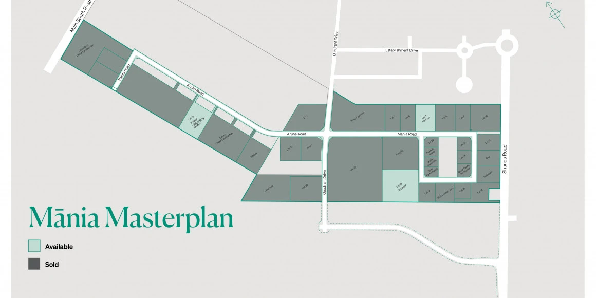 Located at 320 Shands Road, Hornby, Christchurch, Mānia has a total development area of 41 hectares.