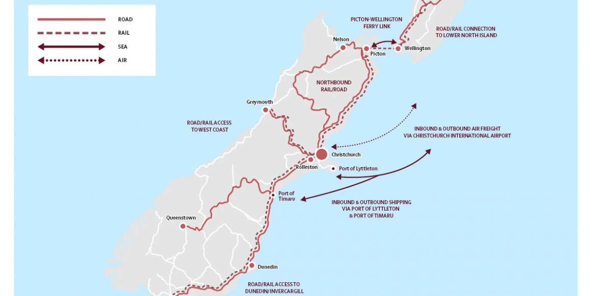 Mānia is located close to a number of transit links, including the state highway network for heavy goods vehicles to the south, north and west, and to Port Lyttleton, the Southern Motorway link between Christchurch and Rolleston, Christchurch Airport (12 minutes) and the KiwiRail network.