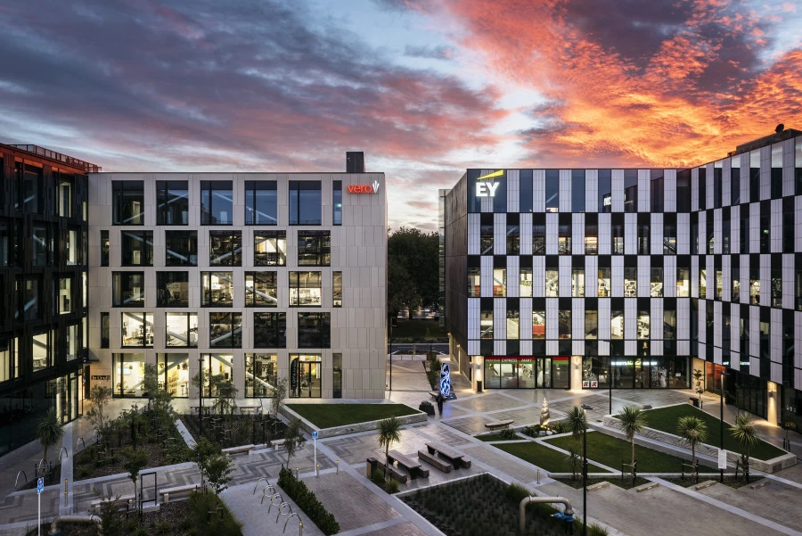 The development also uses an innovative District Energy Scheme with ground-source artesian heating and cooling. With the introduction of the District Energy Scheme and the photovoltaic solar panels on the office rooves, the development is one of New Zealand’s most sustainable office precincts.